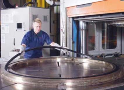 Compression moulding up to 3.5m diameter in a single operation-with one of the biggest presses for precision moulding in Europe